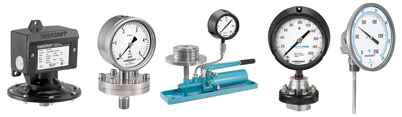 Los productos fabricados por Ashcroft se han convertido en un punto de referencia para medir la presión y temperatura incluyendo manómetros, termómetros, interruptores, transductores, transmisores, instrumentos de aislamiento, sellos de diafragma, control y calibración de equipos.